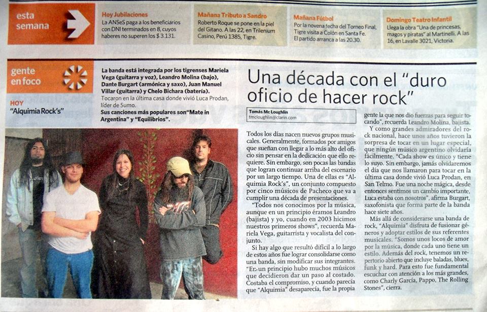 En Clarín de Hoy salió una entrevista de mi banda y veo algunas cosas que así no eran. Con todo el respeto del Mundo una pregunta clara Fue que influencias compartíamos musicalmente y a todos nos gustan distintas bandas,pero una de las que podemos poner mientras tomamos unos mates entre los cinco ponele es SUMO. mi respuesta fue esa.Respeto mucho, pero no me gusta Charly,ni los Stones ,uno o dos temas no mas y que yo sepa a los chicos tampoco tienen esa influencia ,aunque la influencia sea todo el rock no me cambien las cosas!!!