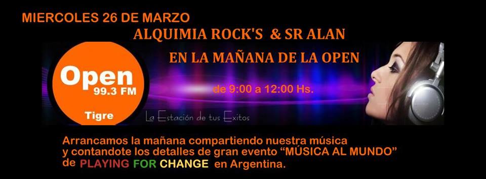 Con un acústico junto Senior Alan, embajador Argentino de Playing For Change, contándote los detalles de el evento MÚSICA AL MUNDO .